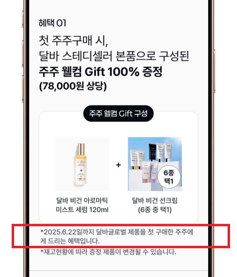 ✅주주우대 몰에서 제품 첫 구입시 주어지는 '주주 웰컴 Gift'는 2025년 6월 22일까지 첫 구매한 주주에게 제공됩니다.