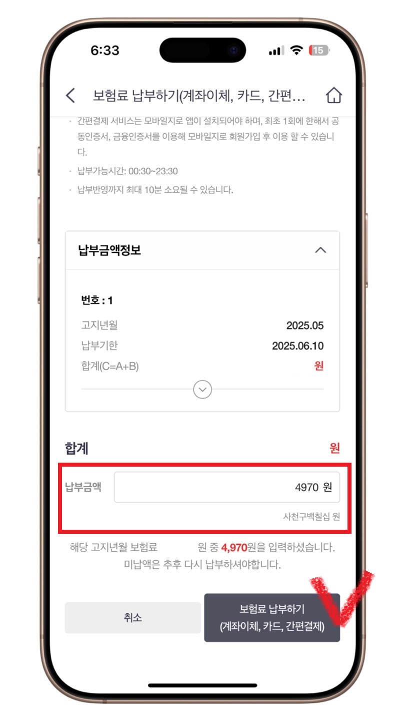 ✅ 보험료 납부하기(계좌이체, 카드, 간편결제) 선택✅ 납부금액 입력하고 보험료 납부하기