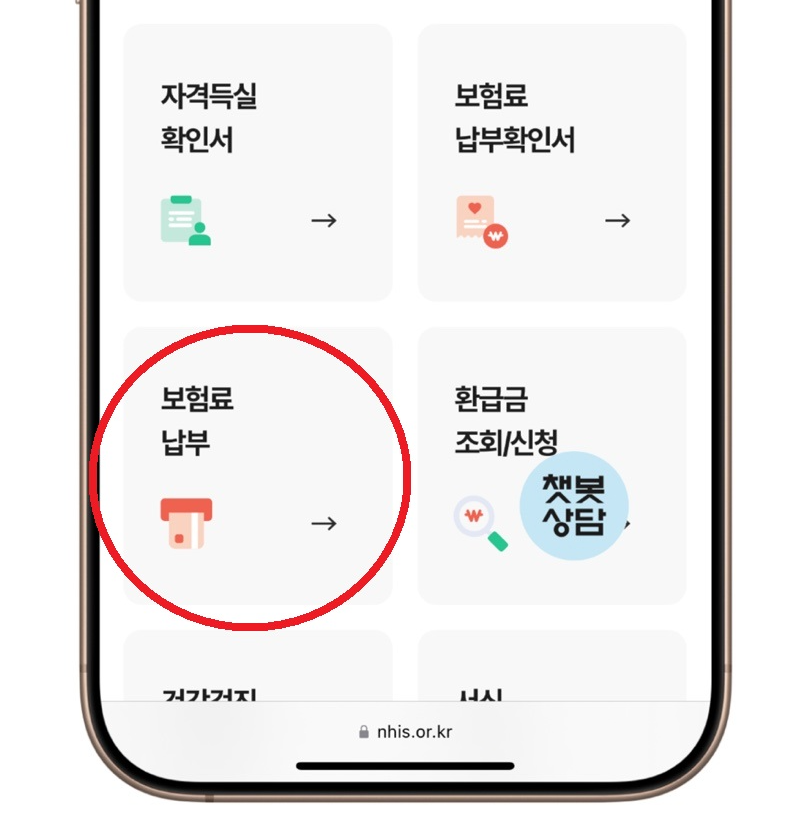 인터넷 앱(아이폰은 사파리)에서 건강보험공단 홈페이지에 접속한다