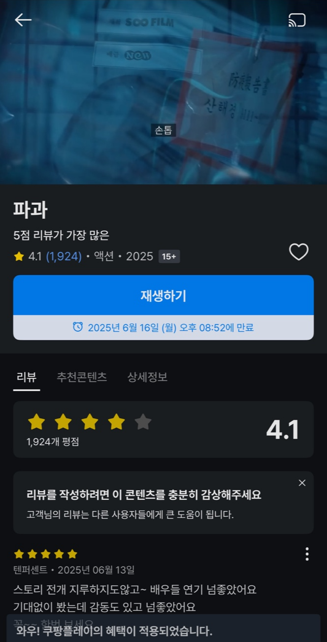 영화 《파과》 쿠팡플레이에서 3일간 무료