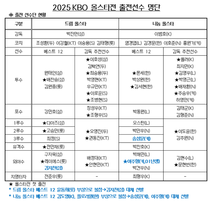 2025 KBO 올스타전 감독 추천선수 명단 발표!