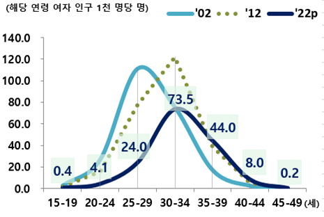 그래프에서 볼 수 있듯이 출산 연령이 점점 증가하고 있다.