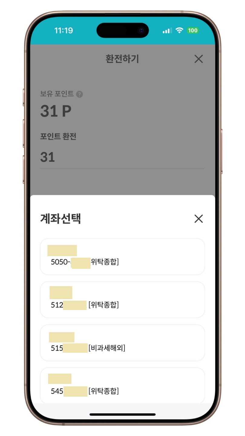 ✅ 예수금으로 입금될 계좌를 선택한다.