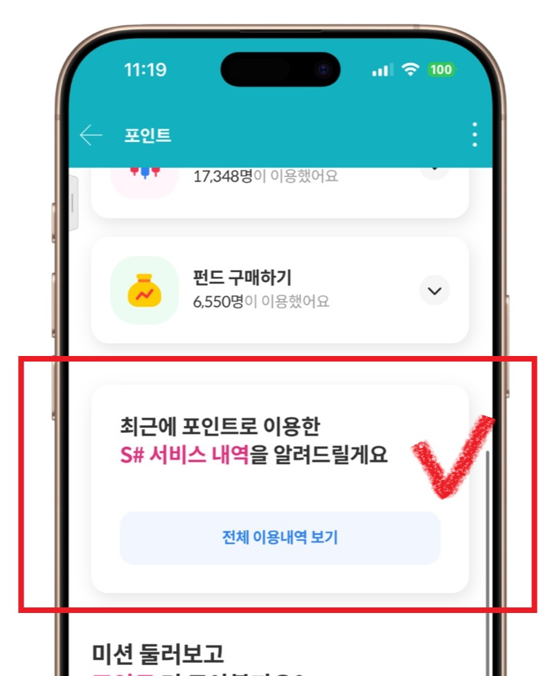 ✅ 내리다 보면 [전체 이용내역 보기] 버튼이 있다. 이 버튼을 꾹!