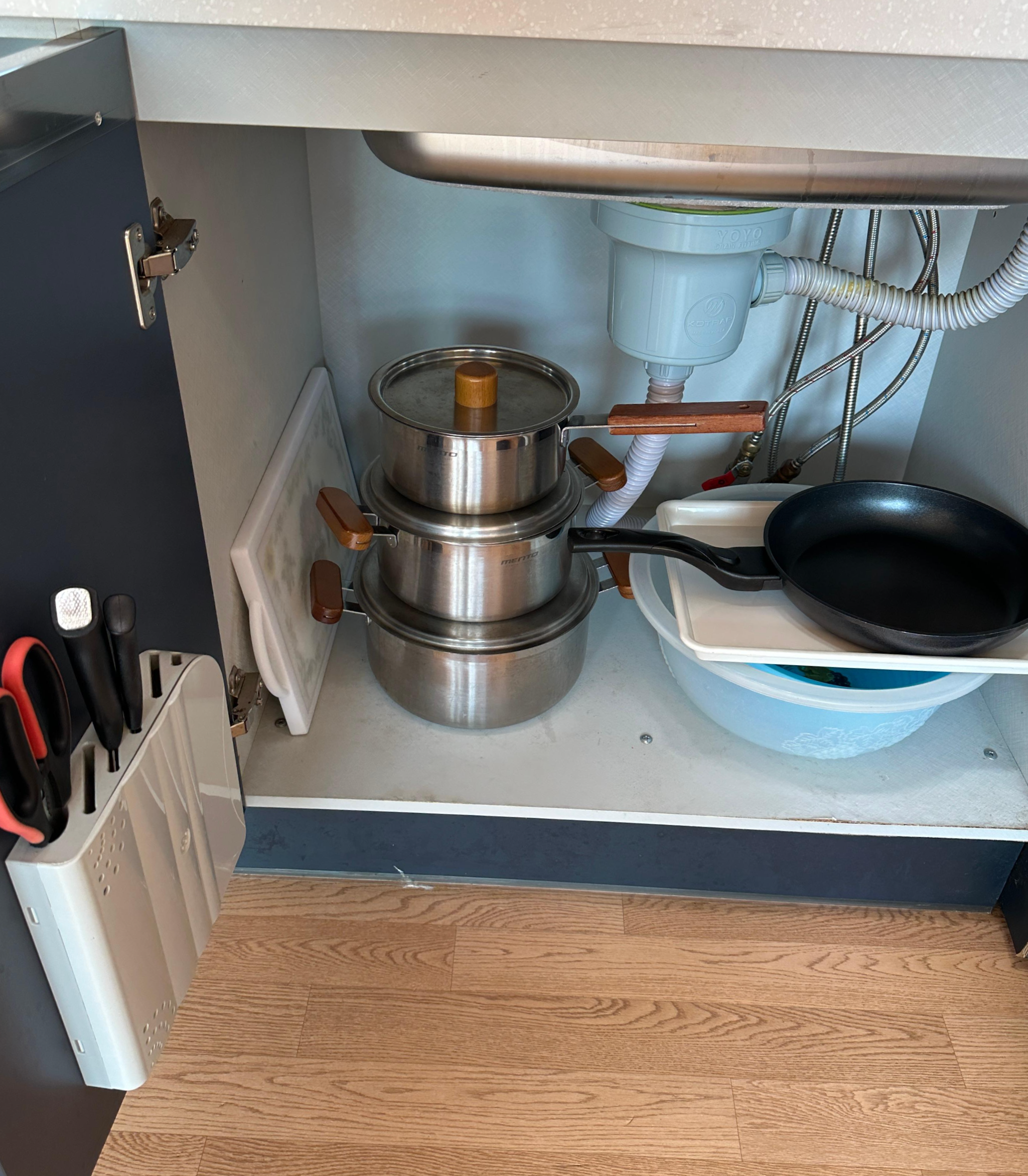 씽크대 아래 쪽을 열어 보면