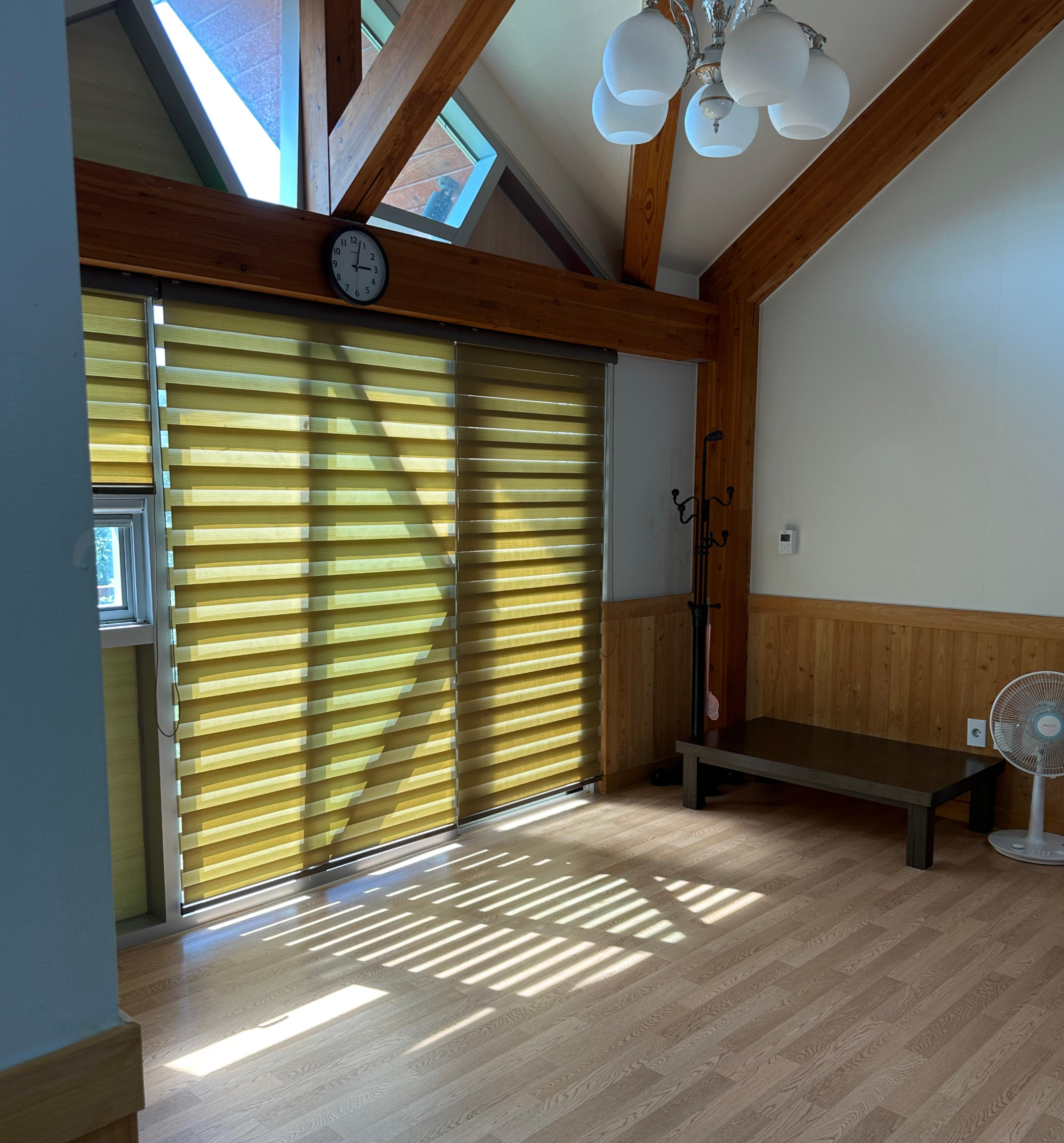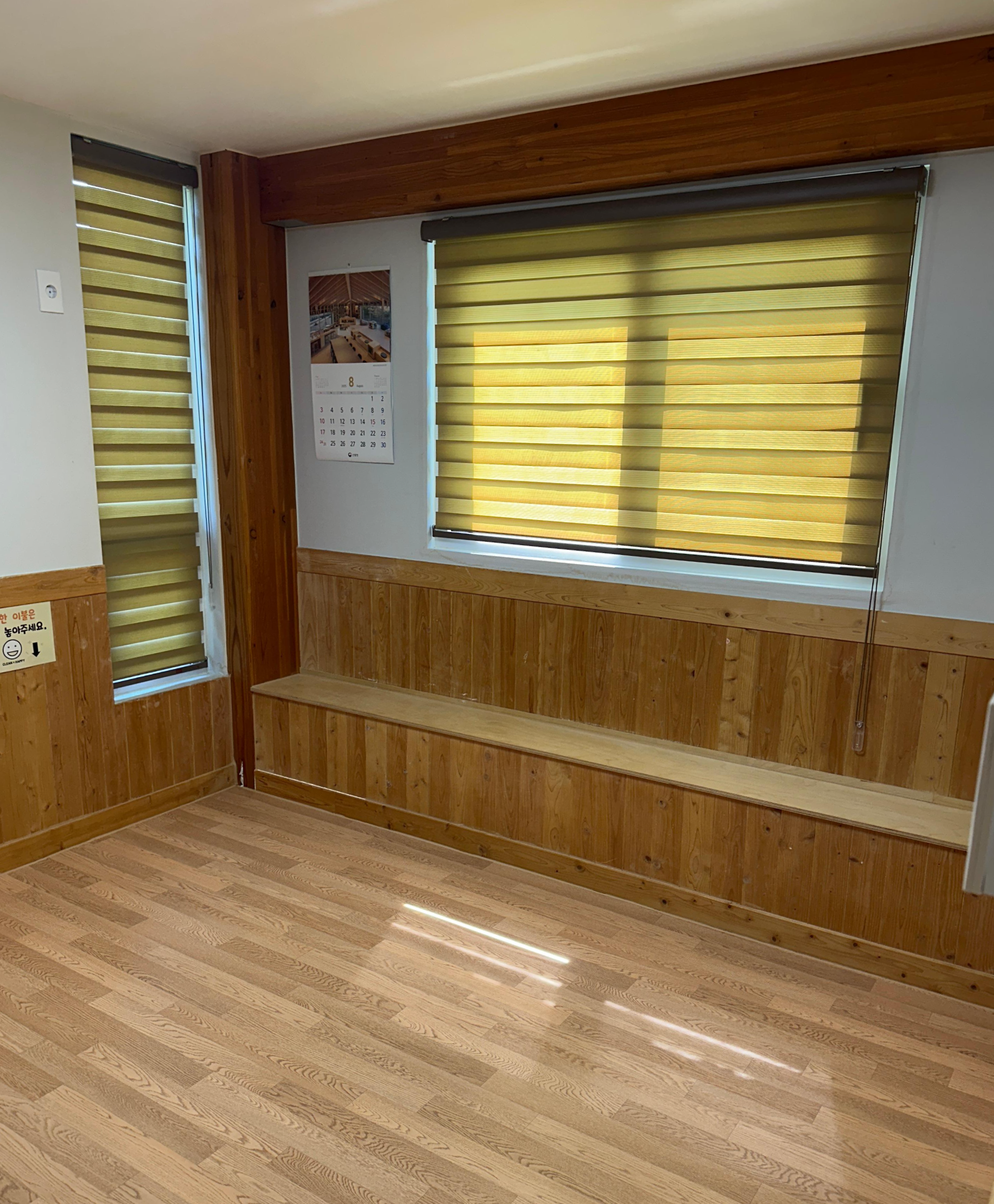 거실 창문의 블라인드는 모두 내려가 있었는데요.
