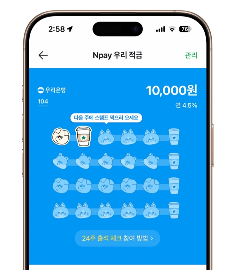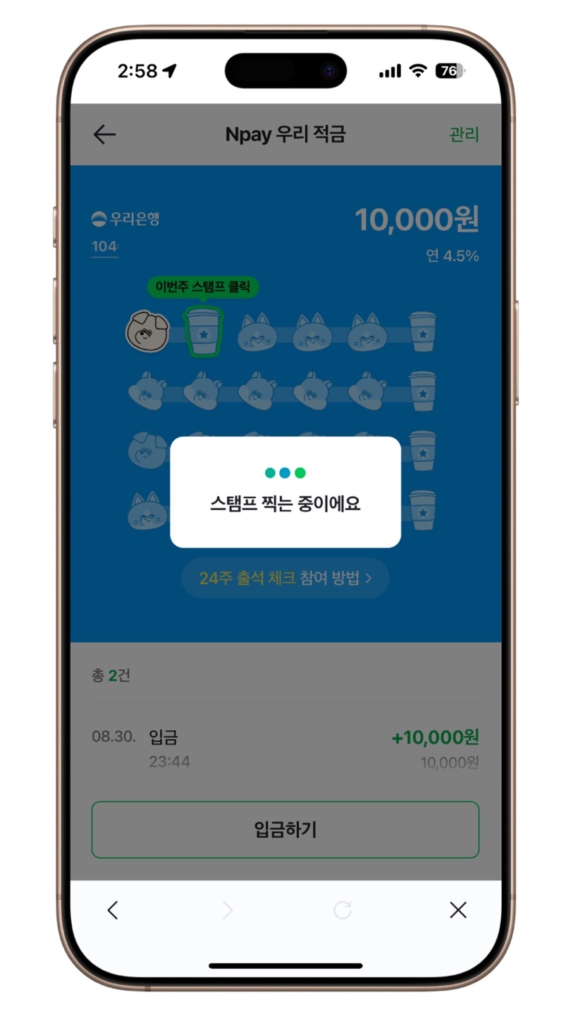 Npay 우리 적금 출석체크