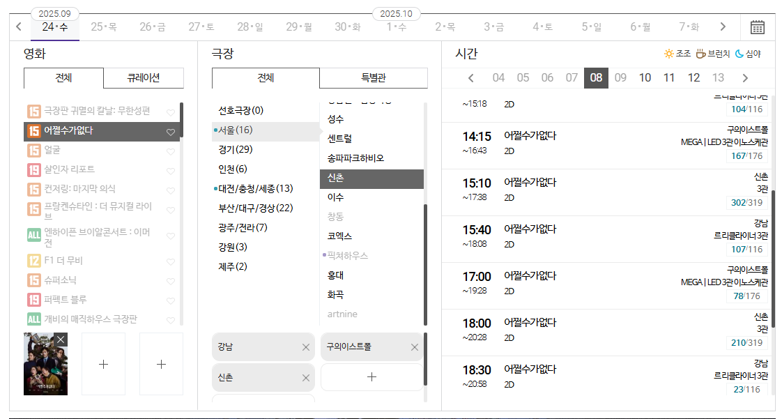 9월 8일에 받은 2차 영화쿠폰으로 바로 예매하고 천원 결제하면 딱이겠네요!