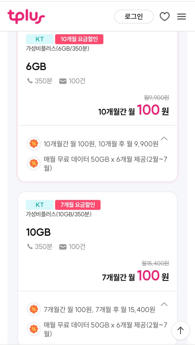 다른 요금제를 찾아보니 더 좋은 것도 있네요!