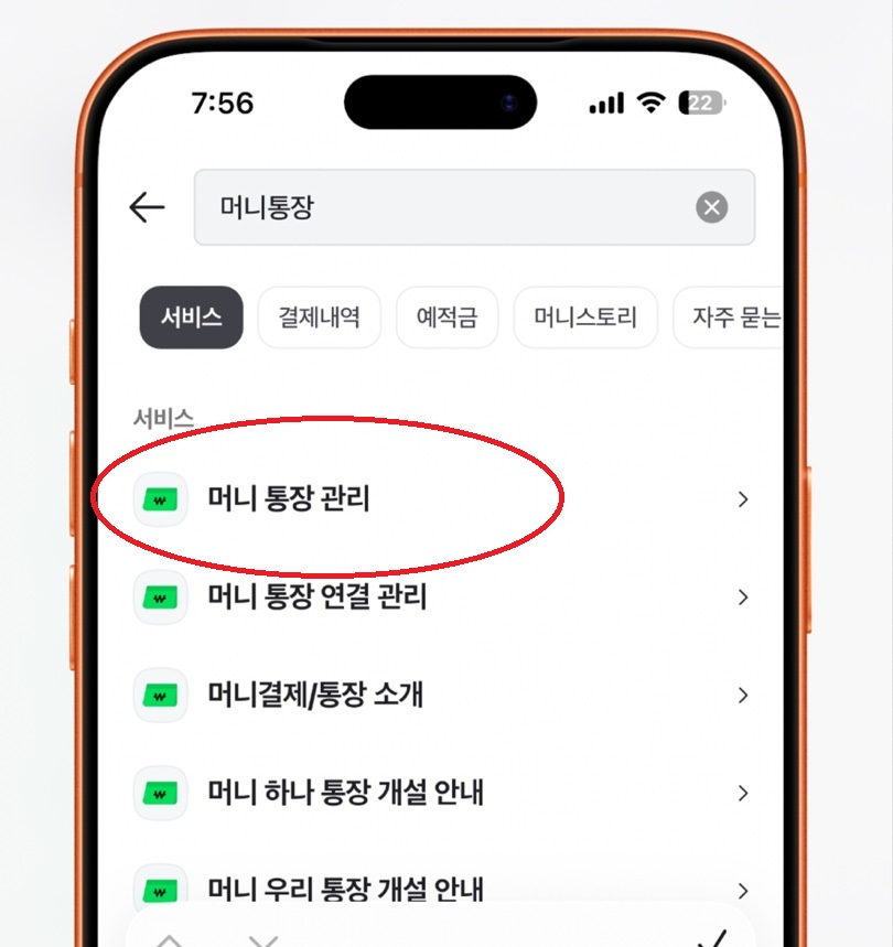 파란 네모 있는 곳에 [머니통장]버튼이 딱 나와 있었거든요.