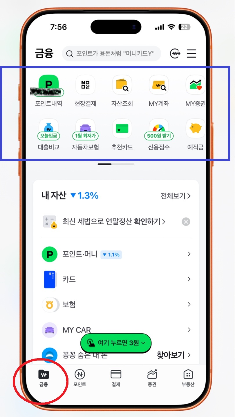 원래는 [네이버페이앱]에서 하단의 [금융] 탭으로 들어가면,