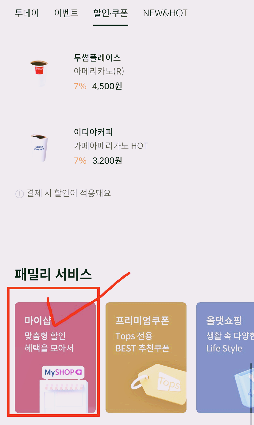 그다음 상단에서 할인·쿠폰을 선택한다.